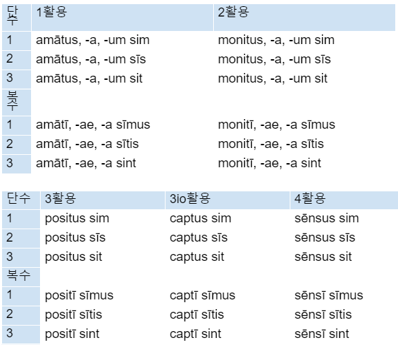 * 접속법 완료시제 수동태 = 완료분사 + sum 동사 접속법 현재