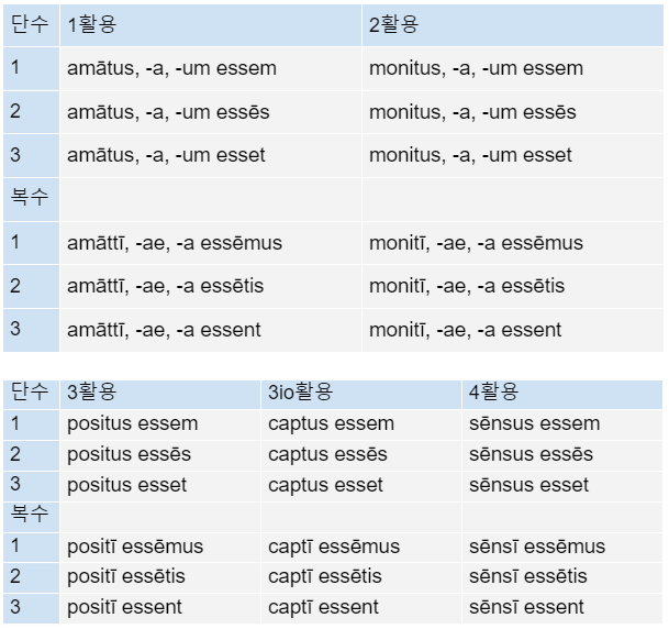 * 접속법 과거완료 수동태 = 완료분사 + sum 동사 접속법 미완료